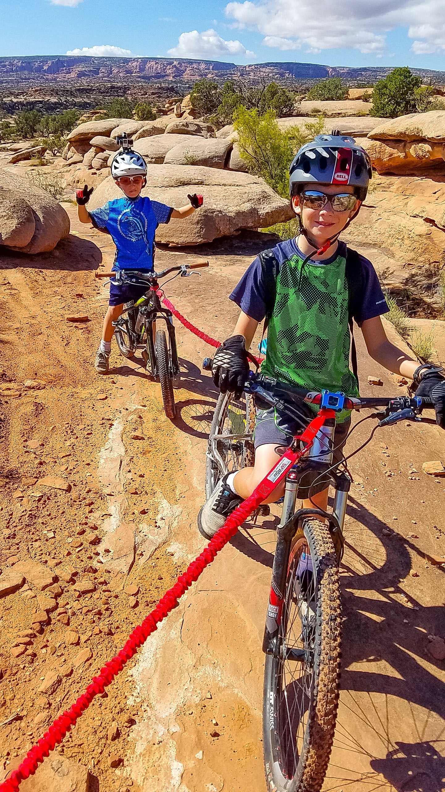Designed to help tow kids up the trails, this simple & lightweight bungee tow strap is an excellent addition to your memory making gear! With a TowWhee, your kiddo rides behind you, pedalling as much as they can on the climb, also enjoying the floating sensation as you give them a boost from the front. This ingenius piece of kit extends the time your family spends adventuring on the hills, with way more stoke too.