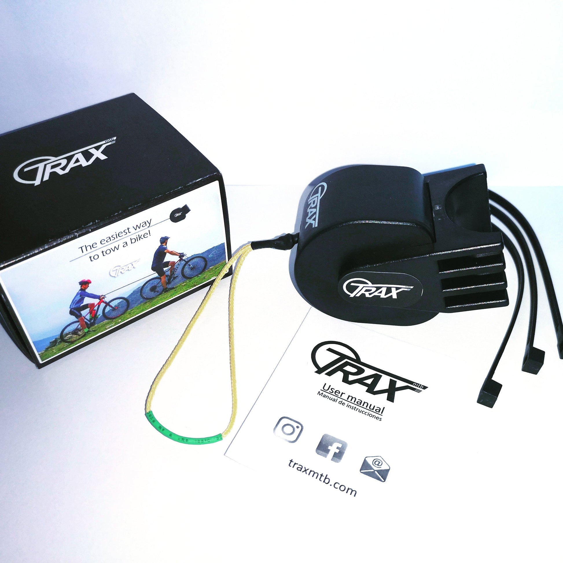 TRAX MTB is a device designed to be assembled at the seat post of any bike allowing it to tow another one. The traction is made by a Kevlar wire and a mechanical system designed to pick it up back and to avoid any possibility to become tangled to the wheel.